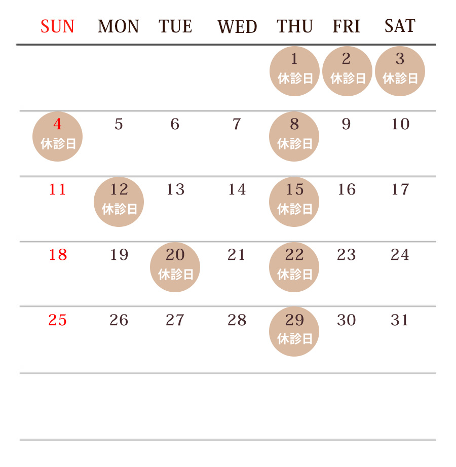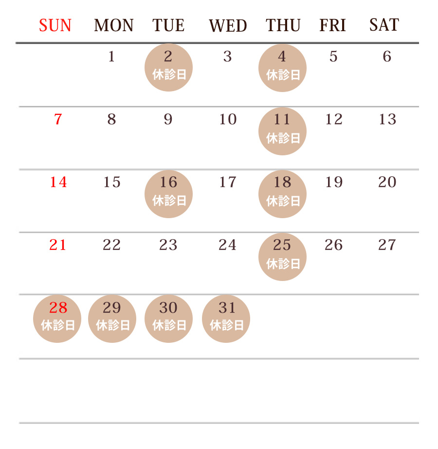※2025年12月28日(日)から2026年1月4日(日)までは年末年始休診となります。